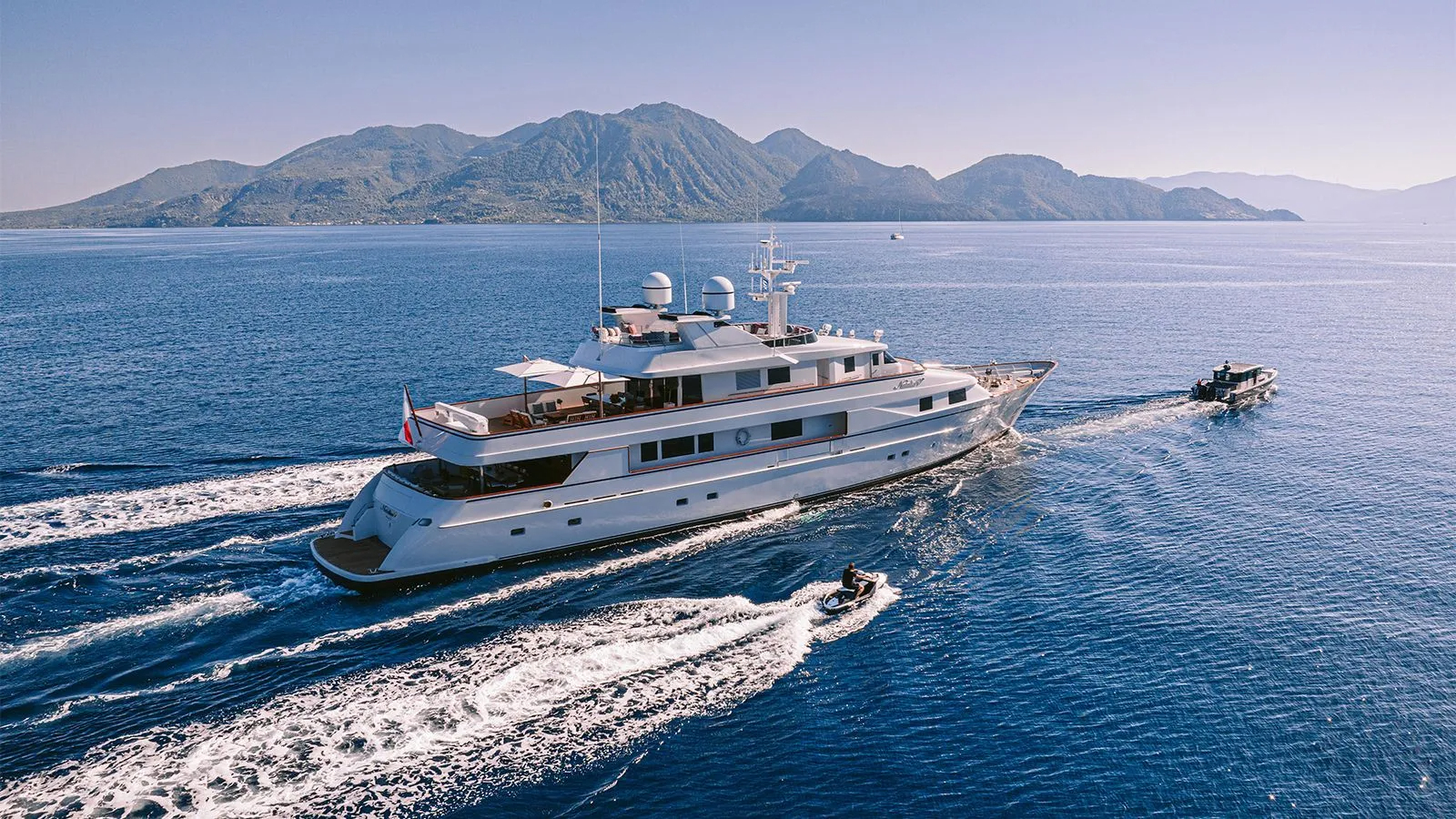 Extending 45.25 m in length, with a beam of 8.4 m and a shallow draft of 2.6 m, Natalia V balances presence with dexterity. Built with a steel hull and aluminium superstructure across three decks, she offers 437 GT of sophisticated volume and five well-appointed cabins—a design manifesto by Picchiotti with interiors refreshed by Tino Zervudachi.